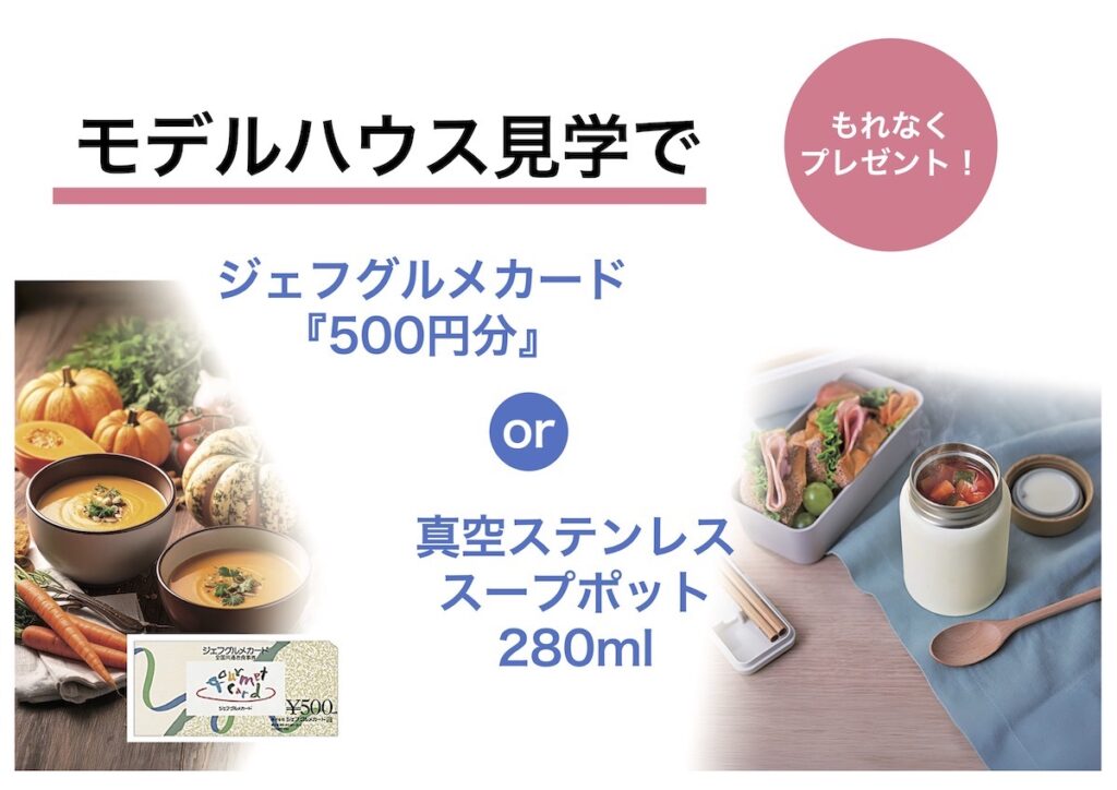 期間中、モデルハウスをご見学いただき、アンケートへご回答いただいた方に、下記の商品をもれなくプレゼント!